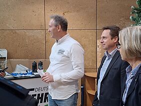Neben dem Landesvorsitzenden der Thüringer Verkehrswacht, Andreas Schubert, waren Vertreter:innen der LPI Thüringen, der Unfallkasse Thüringen und der AGFK Thüringen vor Ort. Dabei haben wir auch auf die gemeinsame Abstandskampagne zum Überholen von Radfahrern aufmerksam gemacht.